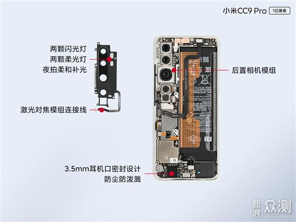 2、 小米CC9 Pro拆解:相机成本值几颗骁龙855   号称光相机成本就相当于几颗骁龙855的小米CC9 Pro,到底内部做工、用料如何呢?现在,官方拆解已经出炉。据悉,小米CC9 Pro后置一亿像素五摄,这是小米首款后置五摄手机,也是迄今为止最强悍的小米拍照/录像手机,斩获DxOMark总分第一。核心配置上,小米CC9 Pro采用双曲面柔性屏,搭载高通骁龙730G移动平台,最高配备8GB内存+256GB存储,前置3200万像素,电池容量为5260mAh,支持30W闪充。 加热后慢慢打开后盖就能看到,小米CC9 Pro的内部并不是常规的三段式布局。内部左侧大量空间都留给了五摄镜头模组,边框侧键开槽部分增加了支架保护,能够起到一定的密闭作用,防尘防泼溅。电池上方堆叠了NFC线圈和大面积的导热石墨。拆开左侧的主板盖板便能看到内部结构,主板区和电池呈左右布局。副板位于机身内部右上方,通过FPC同主板相连。右下方是等效1cc的超大体积音腔,外放响度相较前代CC9提升一倍。右侧5260mAh大容量电池几乎占据了机身内部大半空间,采用易撕贴同中框固定。卸下后置相机保护盖板就能看到一亿像素五摄的“真容”,其中最显著的无疑是中间巨大的一亿像素超清主摄。镜头盖板上集成了激光对焦模组,通过FPC同主板相连。激光对焦不仅提升暗光对焦速度,更能辅助判断环境AWB,让拍照的白平衡更准更接近人眼所见。 按照说明慢慢撕下易撕贴就能分离电池。电池下方堆叠摆放了全新一代超薄屏下光学指纹模组。以往屏下光学指纹必须同电池错位摆放,一定程度上限制了电池的容量。而小米CC9 Pro上采用的全球首款超薄屏下光学指纹,由于Z轴空间占用极小,不挤占电池空间,可以同电池堆叠摆放,电池容量更大。 另一方面,无需和电池错位摆放,指纹识别区有更多的选择空间,可以放在更加顺手的地方。而以往为了保证不过多挤占电池空间,屏下指纹模组需要尽量放在更靠近底部的位置,用起来不够顺手。另外,小米CC9 Pro在电池上增加了Battery Sense电芯监测回路,能够精准监测电芯的电压,规避了电池保护电路阻抗带来的误差,提高充电效率的同时也更加安全。 全球首款超薄屏下光学指纹识别模组厚度约0.3mm,比1角硬币更薄。通过采用全新的微透镜+微准直技术,集合准直器方案和透镜方案两者的优势。在每个准直孔的上方都集成了微镜头,通过微镜头获取足够丰富的指纹信息,这些光线进入微准直孔后,其他方向的干扰光线会被准直孔过略掉,最终指纹模组接收到进光量充足、信噪比高、图像清晰的指纹信息。不仅质量高易于识别解锁,抗干扰能力也很强。在室外强光下、低温以及干手指等不良环境下的解锁成功率大幅度提升。 主板区域的重头戏是相机模组,首先1亿像素超清镜头是小米联合三星定制的HMX,支持光学防抖,手机少有的7P镜头设计,尊享版更是多达8P镜头。还支持像素4合1技术,暗光环境下可以获得更充足的进光量,夜拍也清晰。10倍混合变焦镜头同样支持OIS光学防抖,保证拍摄远处时也能获得良好的防抖效果。而50mm经典人像镜头是同小米8主摄相同规格的1200万相机,1.4μm大像素支持Dual-PD双核对焦。主板采用“L”型的异形主板,正面以射频芯片和电源管理芯片为主,背面排布高通730G SoC和内存闪存堆叠。小米CC9 Pro支持多功能NFC,采用了小米9/9 Pro同款的SN 100T芯片。而全新的电荷泵充电管理芯片的加入,配合Mi-FC高速充电技术,让小米CC9 Pro的30W疾速闪充能获得不输常规40W的高速充电体验,65分钟即可充满5260mAh大电池。 工程师通过全新的内部空间布局,不断尝试调优,将一亿像素五摄四闪这样的庞大的相机模组、5260mAh超大容量电池、NFC以及等效1cc大体积外放音腔都整合到机器内部。以上就是小米CC9 Pro的内部的“真容”。