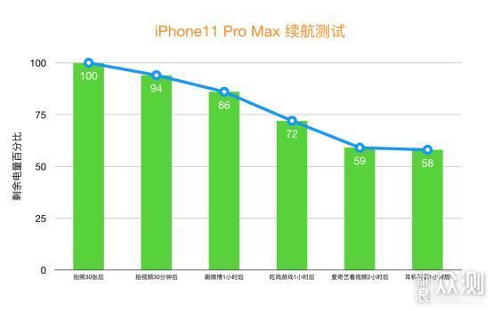 众所周知,苹果以往的手机向来只提供“正常使用一天”的续航,多一毫安都不给。苹果用户在动辄4000mAh电池的手机面前气得抬不起头,尤其对离不开iOS生态的智能手机重度用户,可谓苦不堪言。 这一代iPhone11 Pro Max的电池容量直接提升到了3969mAh,同为6.5英寸的iPhoneXS Max才3174mAh,在全新PMU管理和超视网膜XDR显示屏加持下,官方宣称续航比上一代提升了5小时。 我没有iPhoneXS Max作对比,但常用的iPhone X总是在每天下班前电量告急,给我带来很大困扰,因为我不爱带移动电源。拿到iPhone11 Pro Max第一时间充满电开始暴力测试续航。 以下为测试情况: