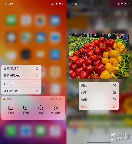 另一个感受变化最大的是iPhone11全系取消了3D Touch,为了体验统一,老款机型桌面按压后的操作不再有二级按压的结果,但在图库和社交软件(微博)按压依然有清脆的震动伴随图片预览,而iPhone11 Pro Max在社交软件重按图片已经没有预览效果,在图库重按出现的预览,会比带3D Touch的iPhone X反应稍慢。