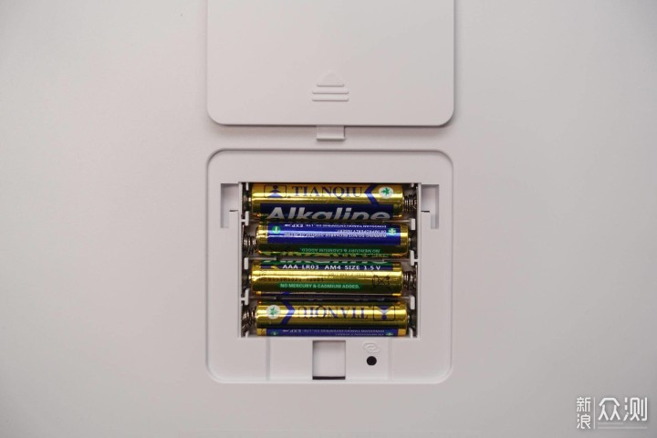 这款体脂秤没有内置锂电池,而是需要四节七号电池供电。产品包装里面自带四节七号电池,估计够用很长一段时间了。