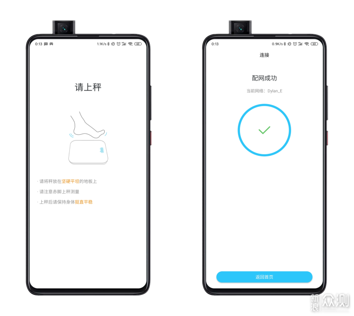 和蓝牙连接时一样,赤脚站立在体脂秤上,体脂秤就可以进入配网模式了。耐心等待网络配置成功即可。