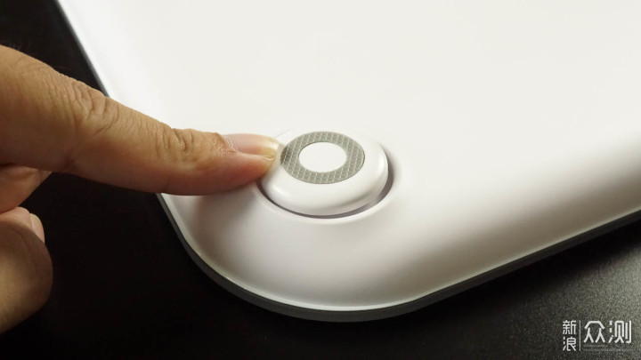 根据说明,这四个脚是称重用的。各自都可以有一定的倾斜角度,保证站上去时平衡。结合实际使用体验,我判断云康宝这体脂秤的节能秘密就在于此。 这四个脚同时还承担着电源开关的作用,因为我人站上去马上就亮了,而我用手按,要到一定力度才会亮。也就是说有一定重量施加在上面时,秤才会通电工作。我就觉得奇怪,没有开关,不可能一直通着电还能待机这么久的哈。这个设计真的是精妙。