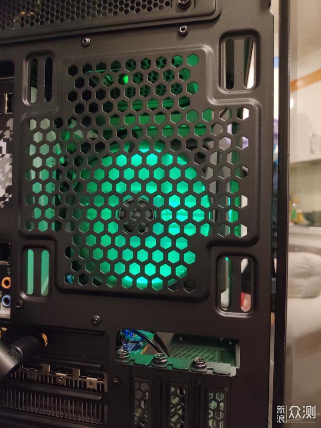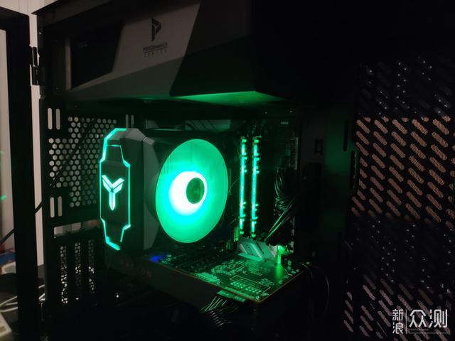 ▲得益于大风扇,整个光效看上去还是非常棒的。这个风扇很高,也只有P120这样的半塔机箱才能放得下了。