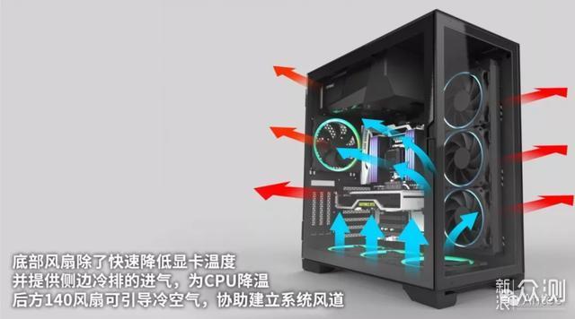 ▲再一起看一看官方给的风道说明,3面进风,一面出风,热风直接吹出机箱,避免闷罐状况的发生。