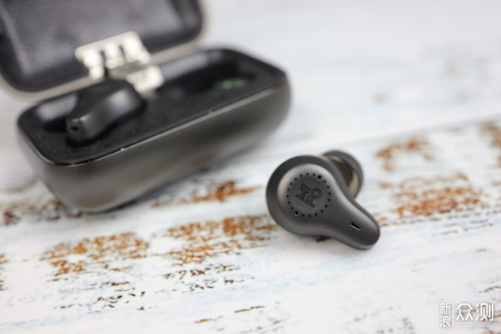 充电盒子的内衬看起来挺特别的,有皮料的既视感。其实内衬乃塑料,做成了类似皮纹的风格,金属与“类皮纹”的交错,使得整个盒子看起来品质不俗,而在盖子与盒体的连接装置上,似乎有点复杂?应该是一种类似于折叠架构的金属转轴设计,进一步提升品质感的同时,这类设计在真无线耳机里实属罕见。