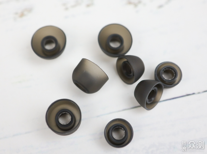 耳套一共有5对,其中一对已经安装在耳机上了。这些耳套很薄,而且比常规的耳套都要小一些,用料品质看起来还不错。