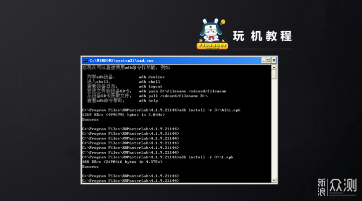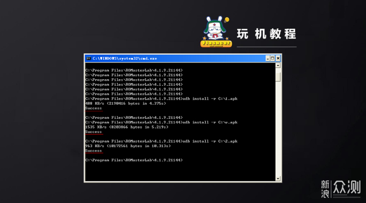 3)然后输入如下指令: adb install -r 1.apk 按下回车键即可,等待cmd运行界面提示“Success”字符则表明Apk成功安装。