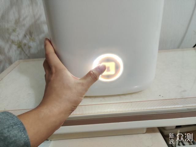 我们再来看一下细节方面,蓝主角整体设计非常简约,正面只有一个大大的按键。我们开通过触摸这个开关实现不同功能的控制。