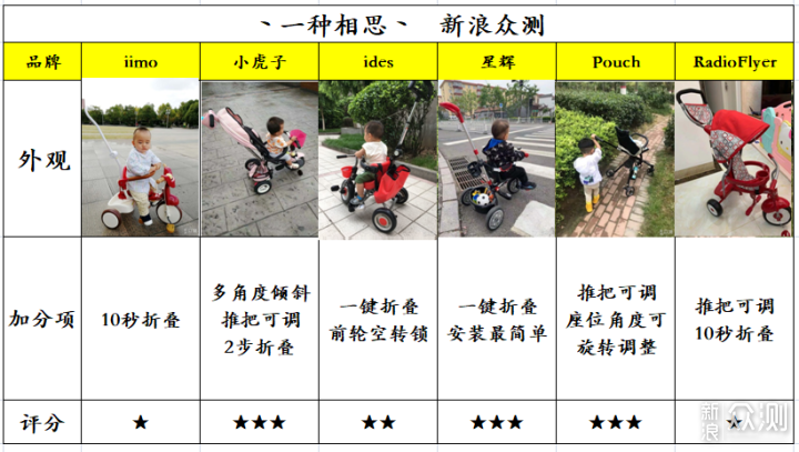 综合对比,两个国产品牌的车更舍得用料,而国外的设计更偏向轻巧,尤其时Pouch和ides这两个品牌,给人轻飘飘的感觉,RadioFlyer虽然车身不是最重的,却是承重能力最强的。 ⑩、其他加分项: 最后再来看看不同品牌之间有没有什么特别加分的选项: