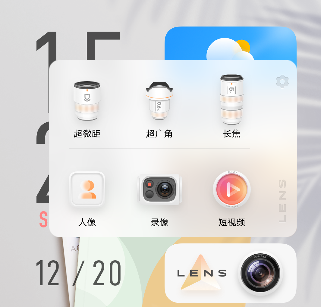 镜头包组件本身涵盖了超微距摄像头、超广角摄像头、长焦摄像头、人像模式、录像功能以及短视频功能,轻按即可选择。两者合并起来,就省略了用户在APP中寻找拍照模式的时间,这尤其是在一些稍纵即逝的抓拍场景具更具实用性。